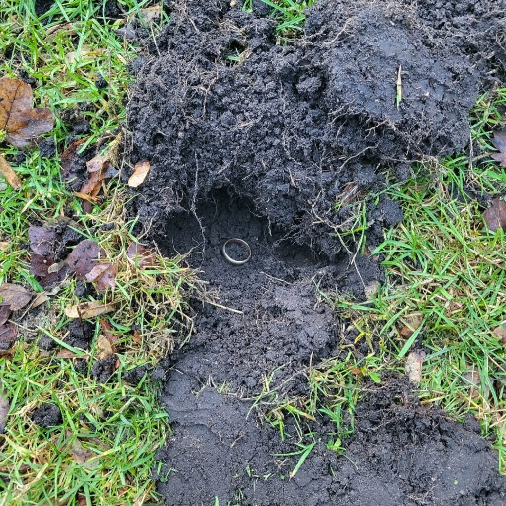 Wenn ein Ring im Park oder auf einer Wiese verloren geht, liegt er meist direkt auf der Erde oder im Gras.